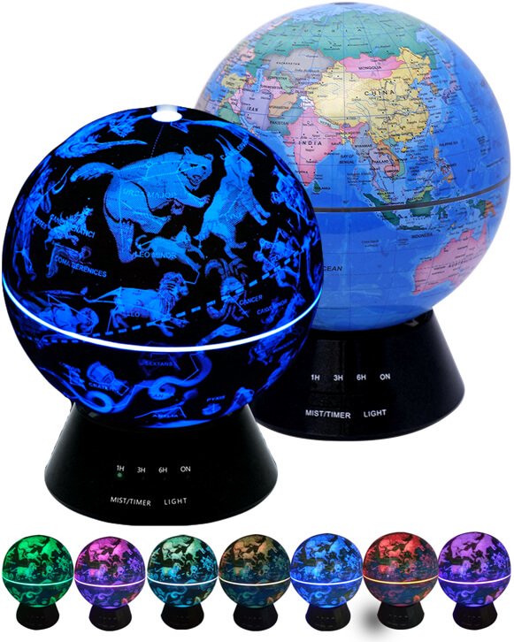 Уникальный аромадиффузор Глобус\Зодиак. При дневном свете выглядит как глянцевый глобус с географической картой земли. При включении подсветки и темном свете необыкновенно красивая переливающаяся Астрологическая карта зодиака.