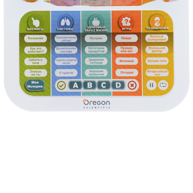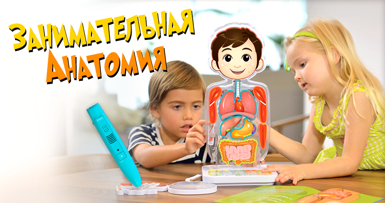 Красочное и увлекательное устройство для ознакомления с органами человеческого организма и его важнейшими функциями. С легкой для понимания манерой обучения детей, объясняющей основные функции человеческого тела, через интуитивное взаимодействие — с помощью касаний Умной ручки.