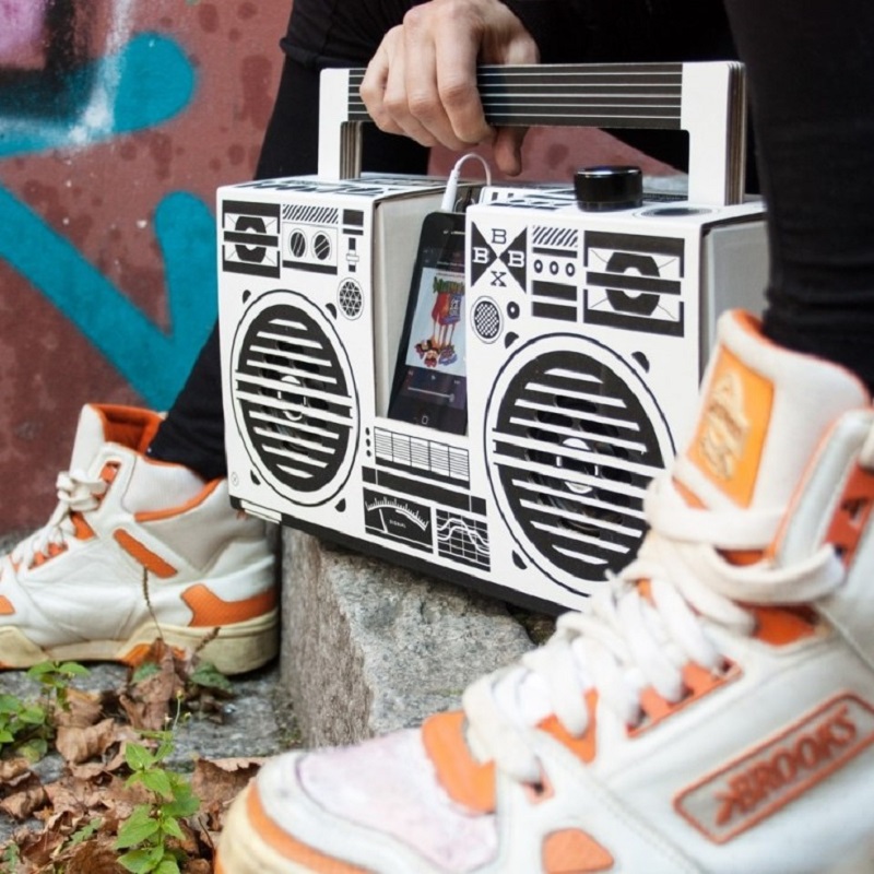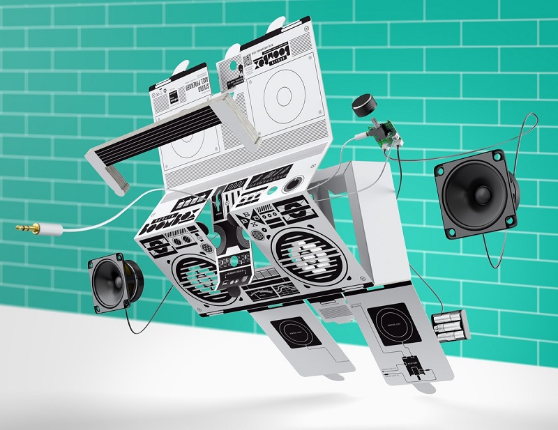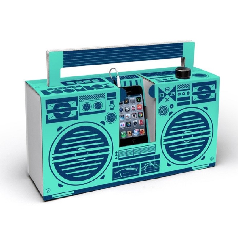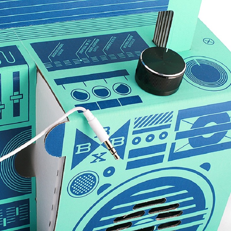 Объединение классического дизайна Вoombox с современными аудиотехнологиями обеспечивает сильный и качественный звук благодаря двум цифровым усилителям на 5 ватт, а смелый графический дизайн, что называется, «цепляет глаз». Вам не нужны никакие специальные знания и умения, чтобы самостоятельно собрать аудиоцентр. Процесс сборки бумбокса прост и понятен и занимает всего несколько минут. Аудиоцентр собирается без клея, без инструментов и каких- либо приспособлений. В комплект входит корпус аудиоцентра в сложенном виде, электронные компоненты и руководство, где пошагово и доступно в схематичной форме указан процесс сборки.