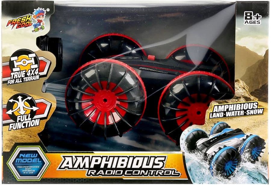 Машинка-Амфибия Джип на больших колёсах с большими протекторами и на пульте управления будет самым лучшим подарком для мальчика. Понравится такая машинка и взрослому. Кузов автомобиля выполнен из прочного качественного пластика. Машинка-перевёртыш выполняет движения во всех направлениях. Заезжает на стену и переворачивается на 360 градусов, а затем продолжает движение. Это самый настоящий зверь!