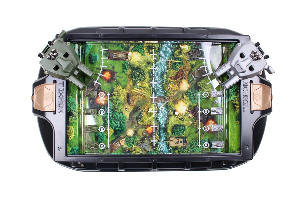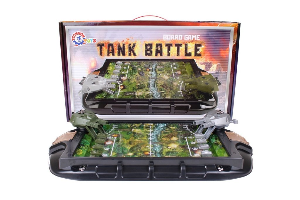 Игрушка «Танковые баталии ТехноК»- увлекательная и динамичная настольная игра с ярким игровым полем. У каждой стороны есть большая пушка с металлическими шариками-снарядами и 4 танка. Правила игры — очень просты. Нужно зарядить пушку двумя шариками-снарядами, прицелиться с помощью объектива и осуществить выстрел. Выигрывает тот, кто первым собьет все танки противника. Игрушка «Танковые баталии ТехноК» будет интересна детям и взрослым. Это также прекрасная возможность играть командами и устраивать турниры.