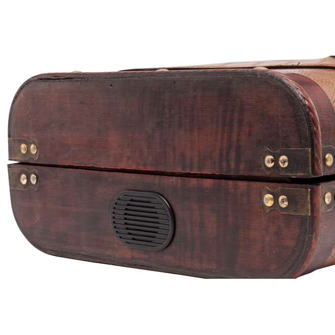 Интересный дизайн проигрывателя пластинок Camry CR1149 не оставит равнодушным никого. Необычный, оригинальный чемодан из дерева перетянут потертыми ремнями с заклепками. Это скорее похоже на какой-то сундук с сокровищами. Внутри находится отличный проигрыватель пластинок!