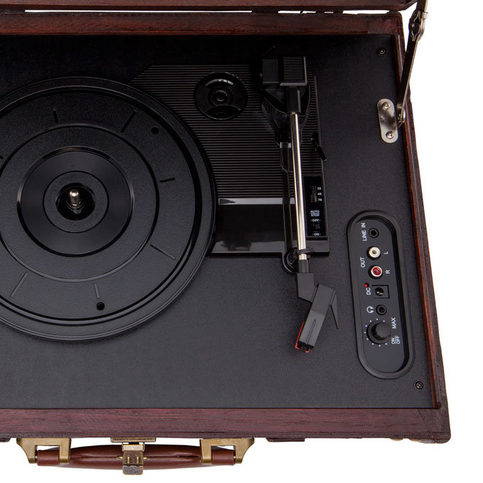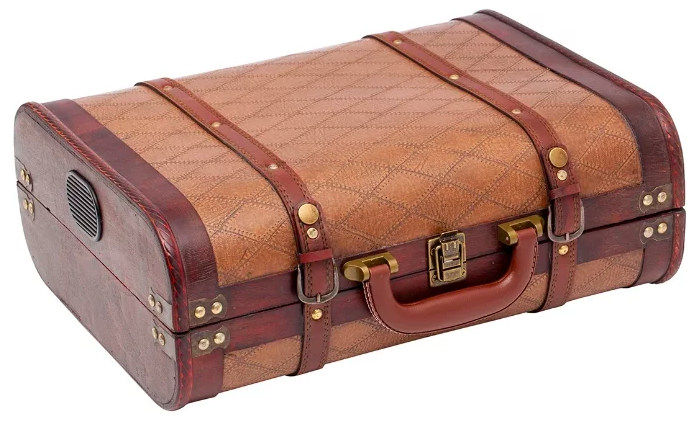 Ретро проигрыватель в «ретро» чемодане из дерева
