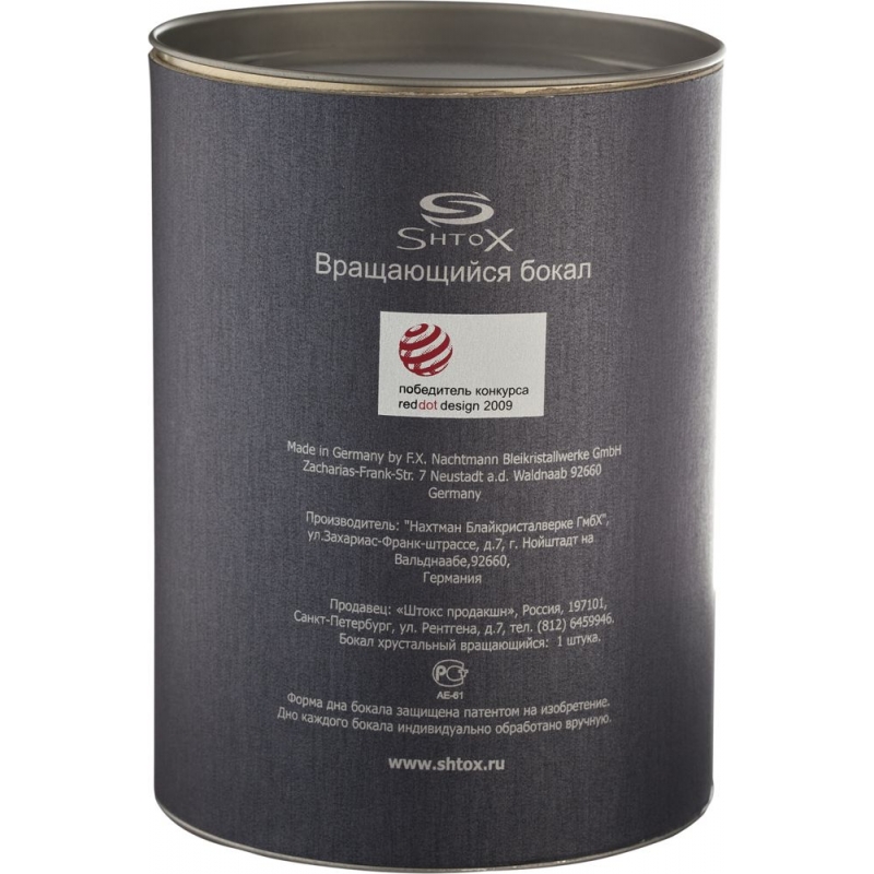 Стекло SHTOX производится в Германии из высококачественного хрусталя, на заводе хрустальных изделий, принадлежащем известной компании Nachtmann. Дно каждого бокала отделано рукой умелого мастера, чтобы придать ему нужную форму. Характеристики: