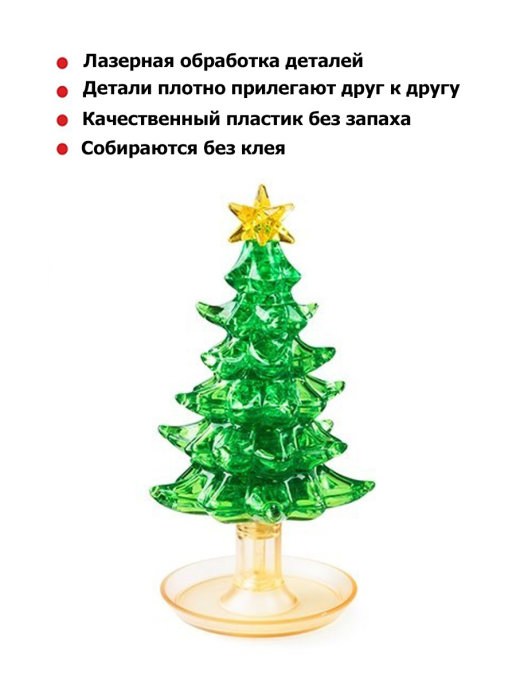 3D головоломка из пластика «Елочка» зеленая 69 деталей, Crystal Pazzle
