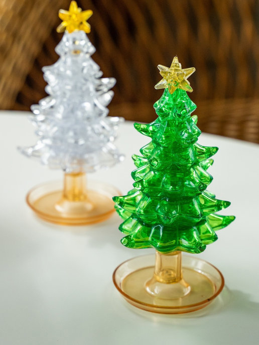 Объёмная елочка придётся по вкусу как новичкам, так и опытным фанатам головоломок. Классическая форма ёлки хорошо подходит для того, чтобы научиться сопоставлять детали в трёхмерном пространстве. Готовая модель станет необычным подарком или удачным пополнением коллекции. На макушку ёлки можно установить кристальную звезду, которая входит в комплект. В комплект также входит инструкция на русском языке, где для каждой детали указан номер. Чтобы облегчить себе задачу, разложите детали по номерам и соединяйте одну с другой. Но самый интересный способ — подбирать части пазла согласно их форме и размеру, учиться определять место для каждой детали в трёхмерной фигуре.