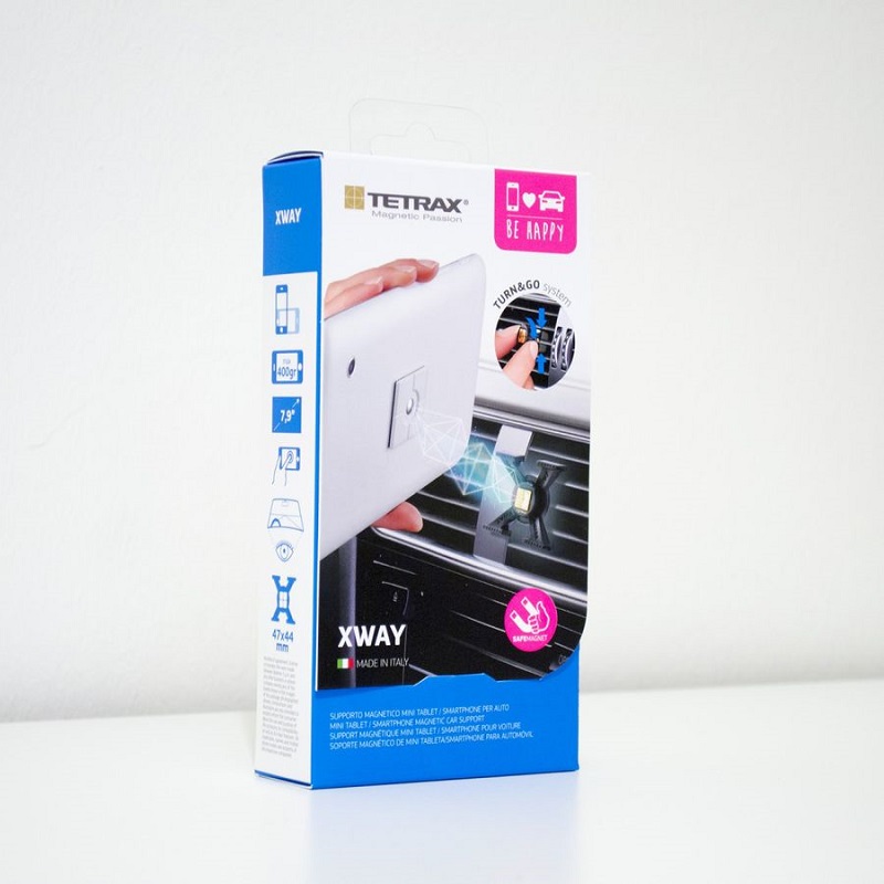 Крепится автомобильный держатель Tetrax XWAY на воздуховоде или приборной панели. На заднюю сторону устройства или чехлов (не силиконовых) крепятся зажимы, с помощью которых телефон будет крепиться к Tetrax XWAY.