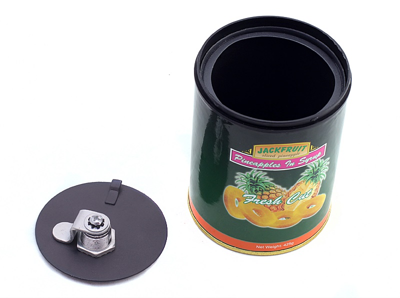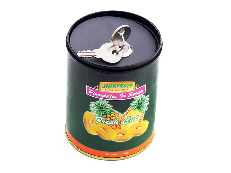 Банка-копилка «Ананас» — настоящий спаситель в период финансового застоя! Копилка имитирует настоящую металлическую консервную банку из под ананасов, но у нее есть секрет — внутри можно хранить как монеты, так и купюры, надежно запертые на ключ!