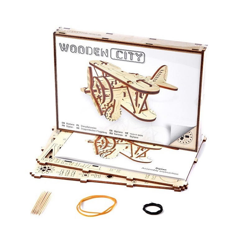 Сборные пазлы от польского производителя Woodencity выполнены из высококачественной березовой фанеры по авторским чертежам, максимально точно выверены и для их сборки требуется лишь желание и немного терпения. Механические 3D модели Вуденсити — это изящные конструкции самолетов, автобусов, колесниц и т.д., которые после сборки не только радуют уникальным внешним видом, но и двигаются, ездят, тикают и живут «полной жизнью» подтверждая все законы механики и физики. Сборка таких конструкторов развивает, вырабатывает усидчивость и учит на практике основным физическим законам.