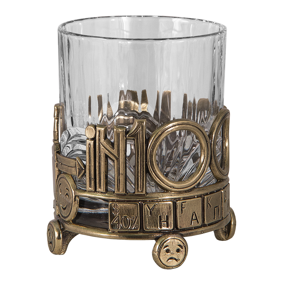 Бокал для виски дизайнерской работы, сделан из хрусталя в оправе из бронзы художественного литья.