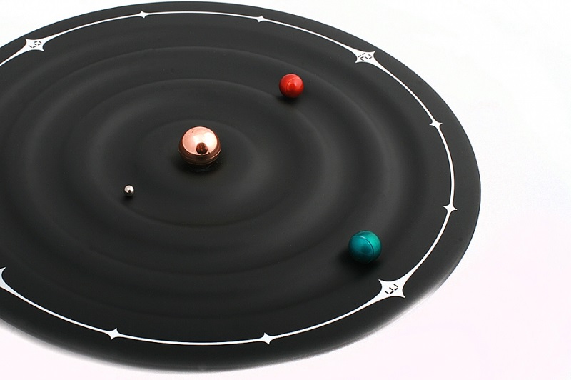 Синий шарик — Земля, он отмеряет часы. Оранжевый шарик — Марс, и он отмеряет минуты. Серебряный шарик отмеряет секунды. Производитель, Galaxy Magnetic Clock, уверяет, что маленький серебряный шарик — Венера. Но нам кажется, что больше подходит Меркурий. Кроме того, астрологи утверждают, что Меркурий — планета торговцев и предпринимателей, что делает эти магнитные часы хорошим подарком для коллеги, шефа, друга или подростка. Легко и ненавязчиво они подчеркнут оригинальность и скромность владельца, а также тонкий вкус дарителя.