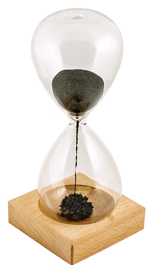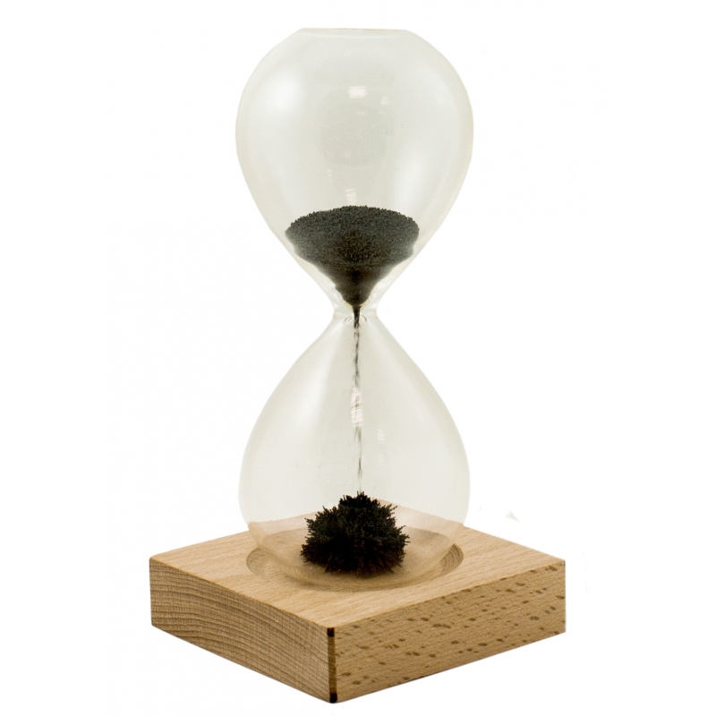 Магнитные песочные часы это элегантное украшение интерьера, релаксант, помогающий снять мысленное напряжение, и весьма нестандартный подарок. Внутри стеклянной колбы находится измельчённое до порошкообразного состояния железо, которое при падении из верхней части в снабжённую магнитом нижнюю часть, создаёт причудливые, неповторимые формы, напоминающие игольчатые кристаллы. Релаксант располагается на специальной подставке из бука и используется в декоративных целях.