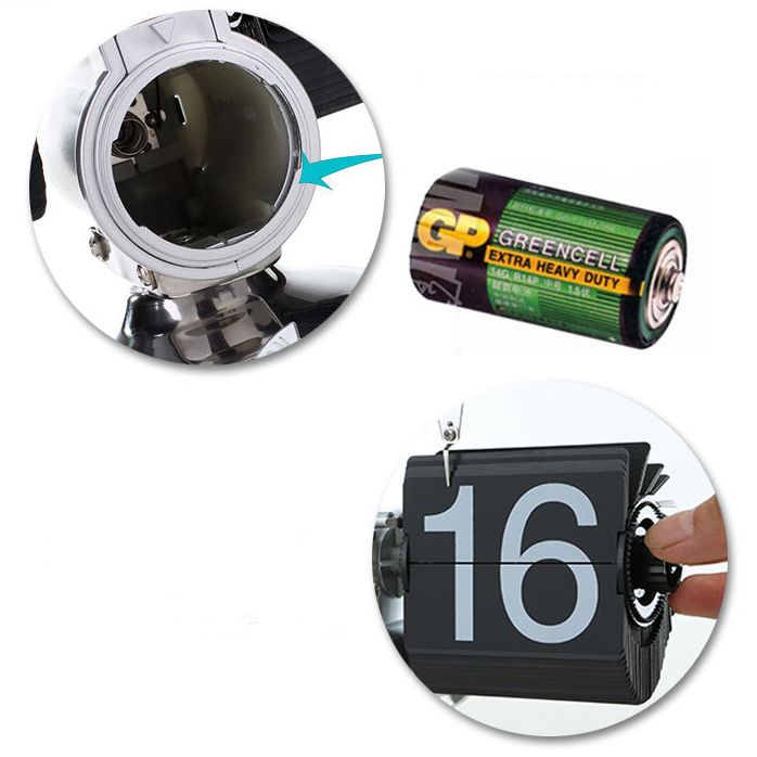 Каждая табличка состоит из двух частей — перекидывается верхняя часть. Питаются часы от батарейки.