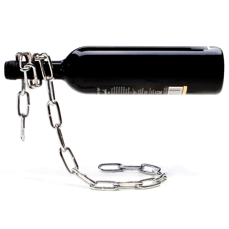 Оригинальный держатель для бутылки в виде цепи. Бутылка помещается в подставку горизонтально горлышком в кольцо из цепи, создавая полную иллюзию парения. Декоративный держатель украсит стол и будет запоминающейся деталью сервировки!
