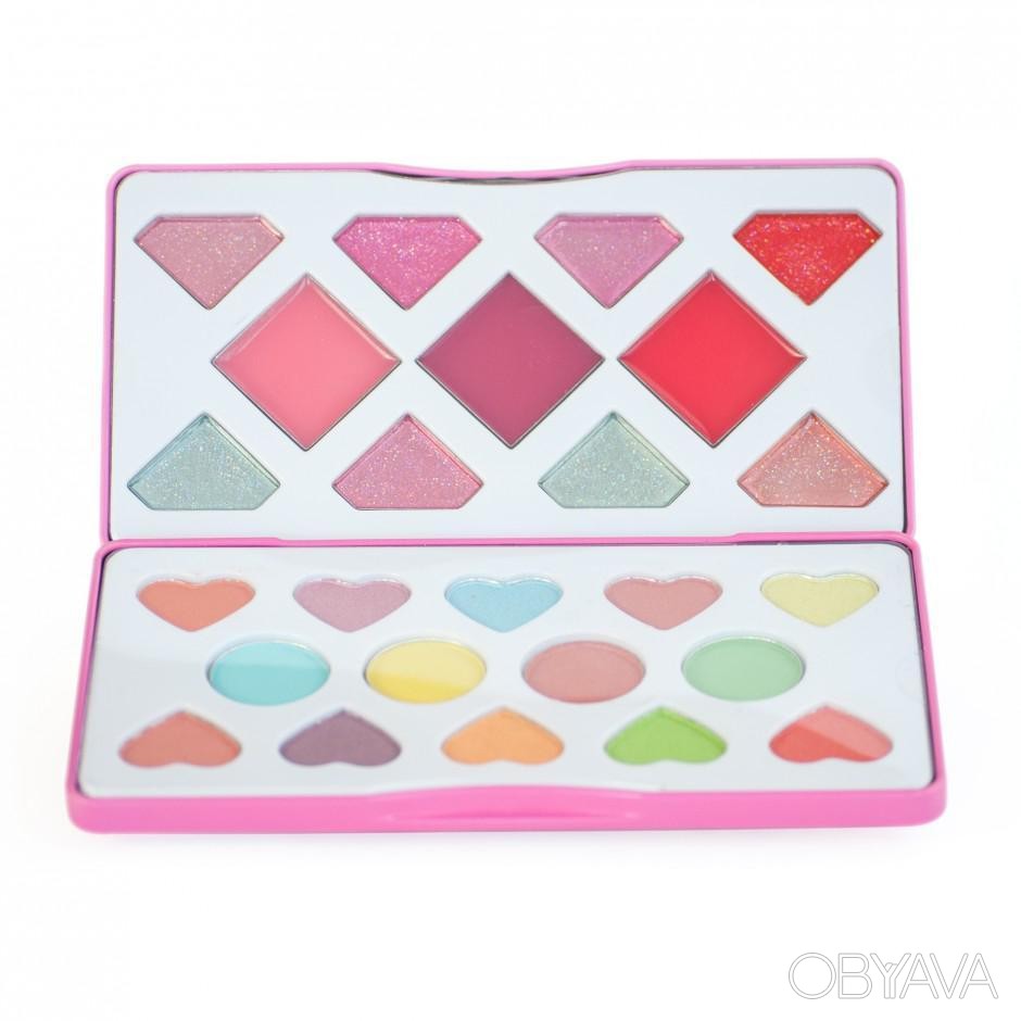 палетка, 14 оттенков теней, 8 блесков для губ, 3 кремовых блеска для губ, металлический кейс.