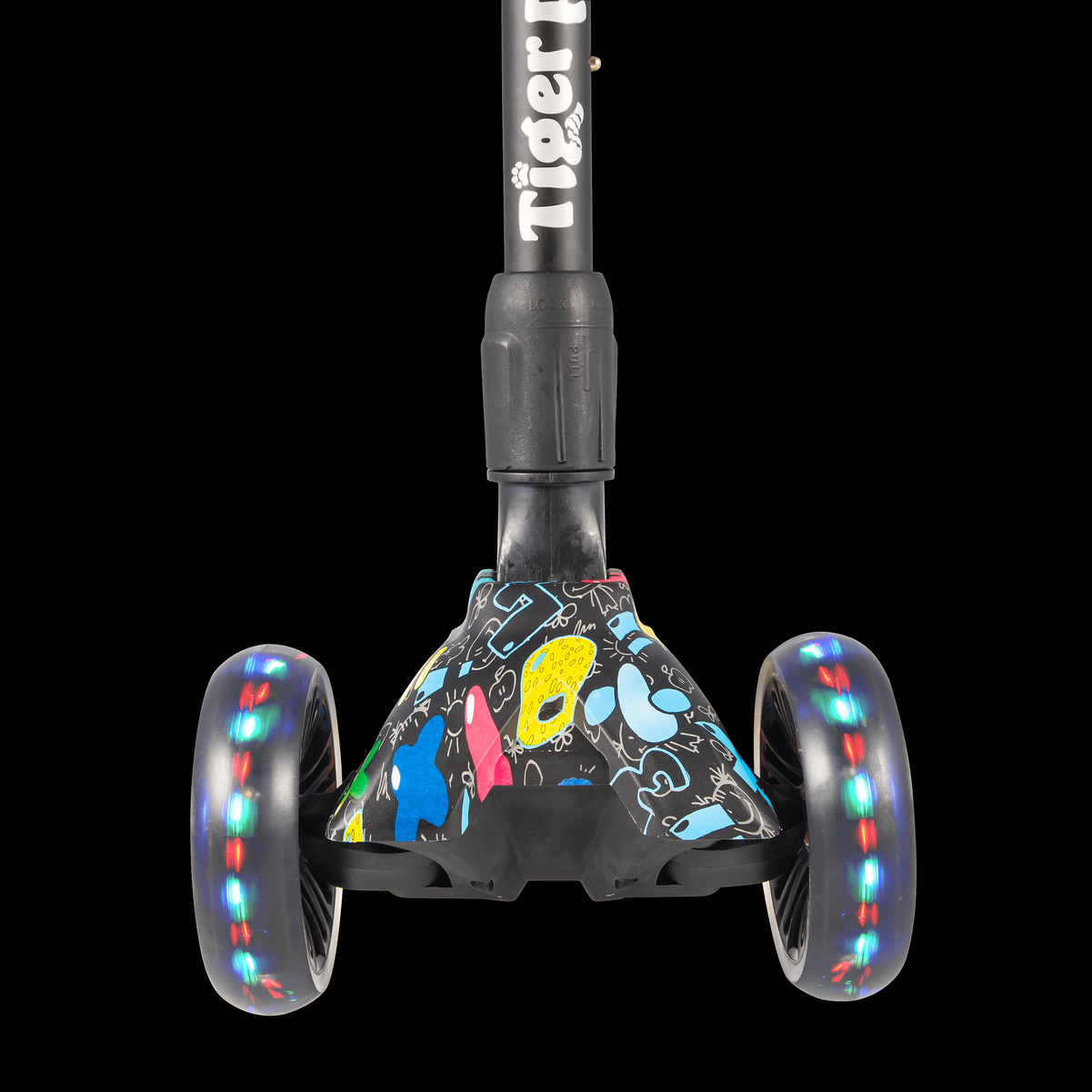 Детский самокат Tech Team TIGER 2021, со светящимися колесами, черный с красным