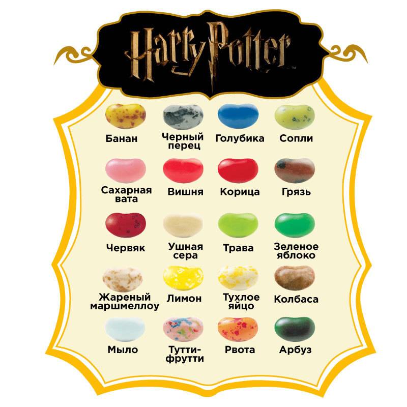 Серия конфет Bertie Botts (Бёрти Боттс) из популярного фильма и серии книг о юном волшебнике Гарри Поттере. По легенде эти конфеты обладают волшебными свойствами и могут иметь вкус как невероятно отвратительный, так и непередаваемо восхитительный.