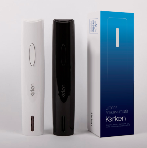 Электрический винный штопор Korken Futura YGO-903 является инновационным решением для открытия бутылки. Небольшой и стильный прибор в корпусе из ударопрочного пластика управляется всего одной кнопкой и может держаться одной рукой. Откупоривание бутылок электрическим штопором для вина практически не требует физических усилий, поэтому устройство идеально подойдет женщинам. На одном комплекте батареек прибор позволяет открыть до 30 бутылок.