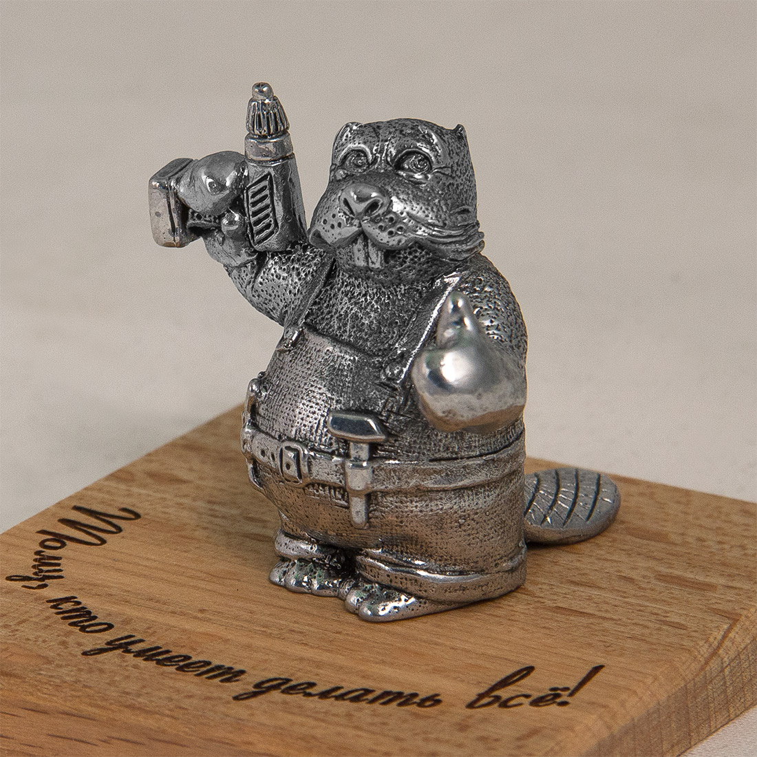 Фигурка " Тому, кто умеет делать всё!» (бобер с дрелью,на ремне -отвертка, молоток)