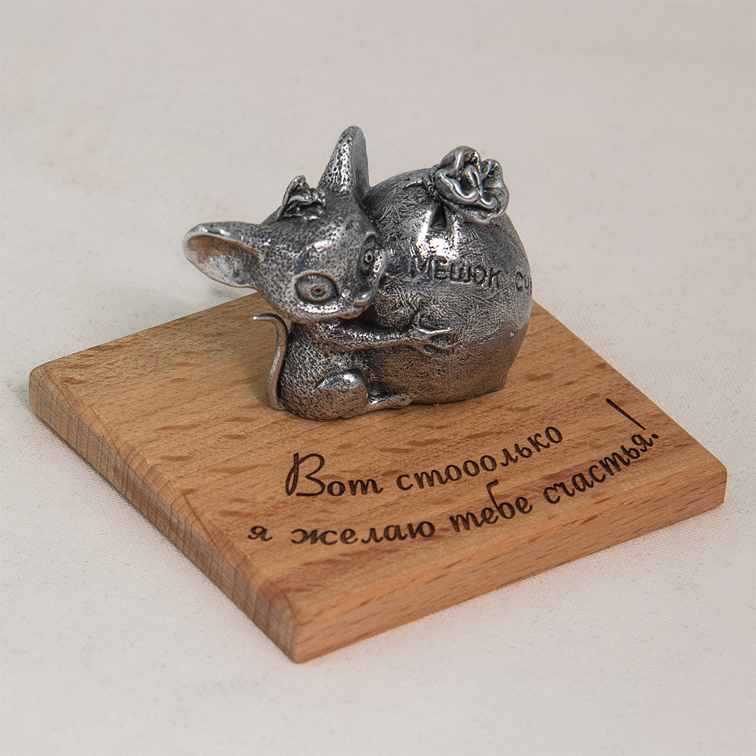 Фигурка «Вот стооолько я тебе желаю счастья!» (мышь с мешком счастья)