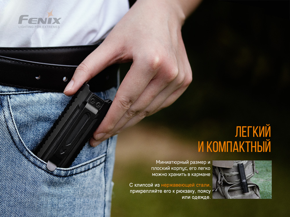 Вместе с фонариком в комплекте также есть темляк, чтобы можно было зафиксировать его на запястье, и нейлоновый чехол, застегивающийся на липучку. Особенности: