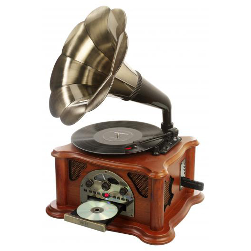 Описания: Граммофон Ricatech RMC360, выполненный в ретро стиле сочетает в себе множество возможностей. А его ностальгическим дизайн, который сделан полностью из дерева, никого не оставит равнодушным. В то время как снаружи мы наблюдаем реальный проигрыватель того времени, внутри есть все современные технологии, к которым мы давно уже привыкли. Помимо того, что проигрыватель Ricatech RMC360 воспроизводит звук с виниловых пластинок, он также имеет проигрыватель компакт — дисков, который считывает все файлы MP3; аналоговый AM/FM — радио; USB — порт и SD слот для карт памяти, и наличие Bluetooth. Расположенные в деревянном корпусе динамики обеспечивают превосходное качество стереозвука, который дополнительно усиливается за счёт трубы. Граммофон Ricatech RMC360 будет отличным подарком как для вас, так и для ваших близких!