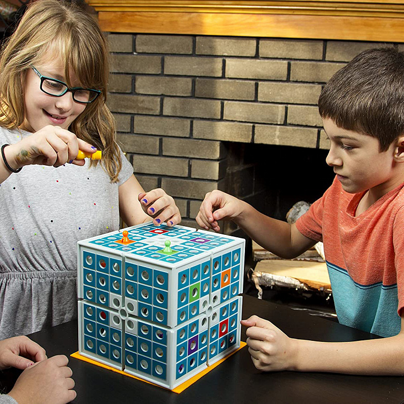 3D-cтратегия начального уровня. Весёлая и интересная логическая игра с очень простыми правилами и захватывающей динамикой. Игра семейного формата, рекомендуется для игры с детьми от 4−5 лет. Сражение между 2−4 игроками идет не на плоском игровом поле, а на 5 плоскостях одновременно. Нужно «защелкнуть» фишки противников внутрь куба, убирая их с игрового поля. Единственный оставшийся на поверхности становится Царем Куба! Есть 2 способа избавиться от оппонентов: Пройти своей фишкой по клетке, где стоит чужая фишка, вдавив ее внутрь куба. Добраться до центра верхней плоскости, где расположена Царь-фишка «Король». В таком случае игрок получает право перевернуть куб на любую сторону, уничтожив/вдавив таким образом все фишки, которые располагались на стороне, которая оказалась внизу! Однако, не увлекайтесь — каждый из ваших противников тоже хочет стать Царем Куба! Цель игры — остаться последним и единственным на поле.