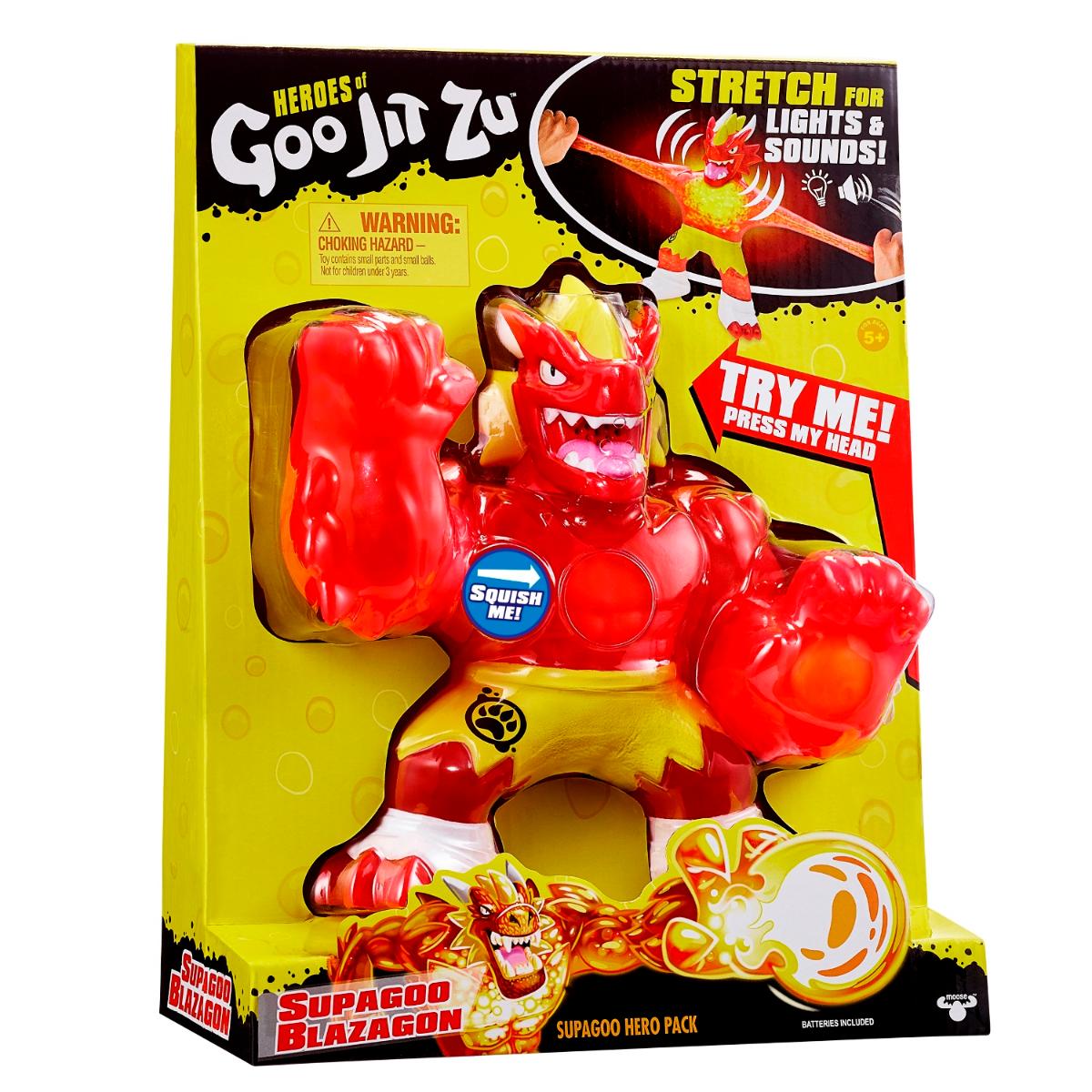 Описание Испытай супер силу Гуджитсу! Растягивай монстра-супергероя Блейзагота, он мягкий и супер тягучий. При растягивании и сжатии он светится изнутри и рычит. А когда ты перестанешь его тянуть, он легко примет первичный облик. Нажимай на голову, и он будет произносить 3 английские фразы. Нажимай на его руку, и из ладони будет выдуваться пузырь. Блейзагот стремится всё держать под контролем, просчитывая всё наперёд. Но если он выйдет из себя Он безжалостно крушит всё. Лучше даже не думать, что станет с тем, кто встретит рассвирепевшего монстра. Тянущаяся фигурка растягивается в 4−5 раз. Фигурка (19 см) обладает светозвуковыми эффектами, которые активизируются при растягивании и сжимании. Игрушка наполнена массой с желеобразными акриловыми шариками, работает от 3 батареек LR44/AG13 (в комплекте). Материалы: ПВХ, ТПР, пластик (АБС, акрил), вода.