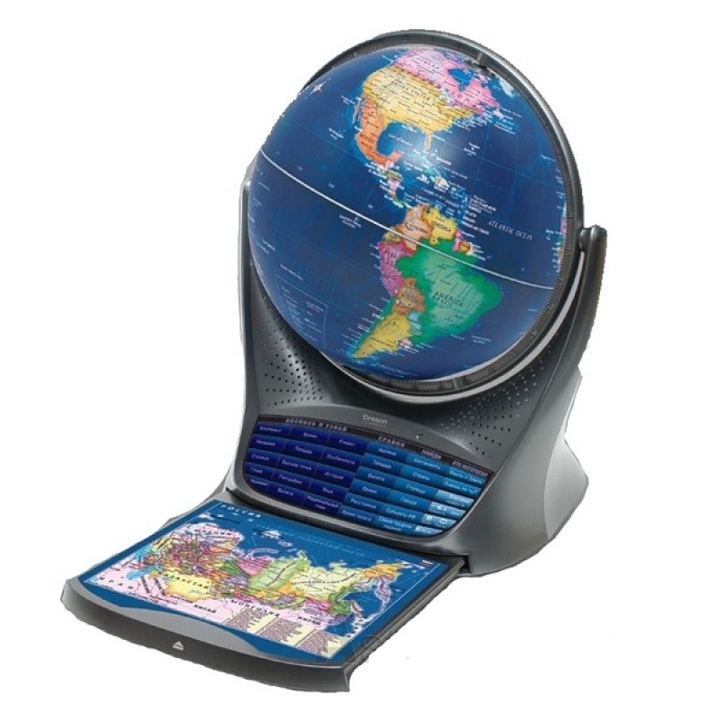 Интерактивный глобус с голосовой поддержкой Oregon Scientific «Звездное небо» позволит сделать учебу не только увлекательной, но и эффективной. Глобус содержит информацию из различных областей географии и астрономии. Интерактивное пособие ориентировано на детей от 5 лет, однако подойдет даже взрослым. Чтобы занятия с глобусом были максимально интересными, предлагается три уровня сложности: для детей от 5 до 8 лет, для ребят от 9 до 14 и для пользователей старше 15 лет.