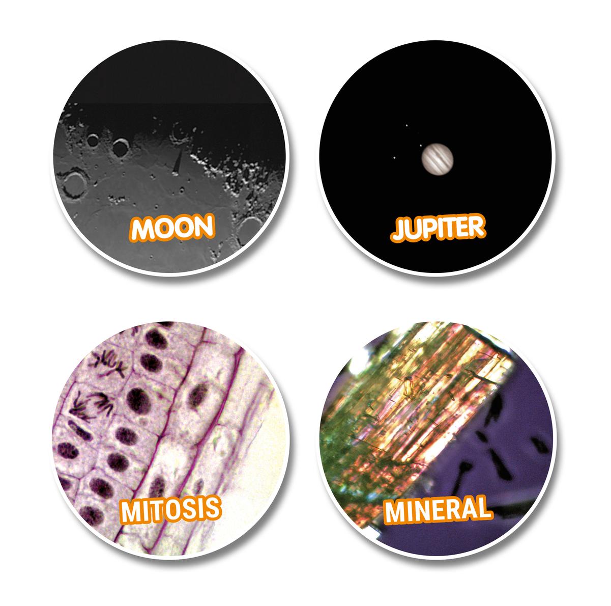 Помимо телескопа и микроскопа, набор включает в себя множество дополнительных аксессуаров, которые позволят без отлагательств приступить к наблюдениям.