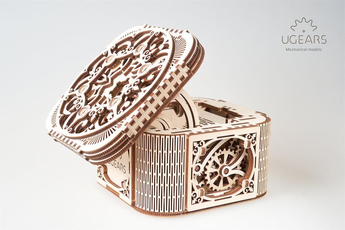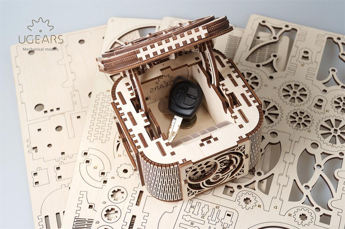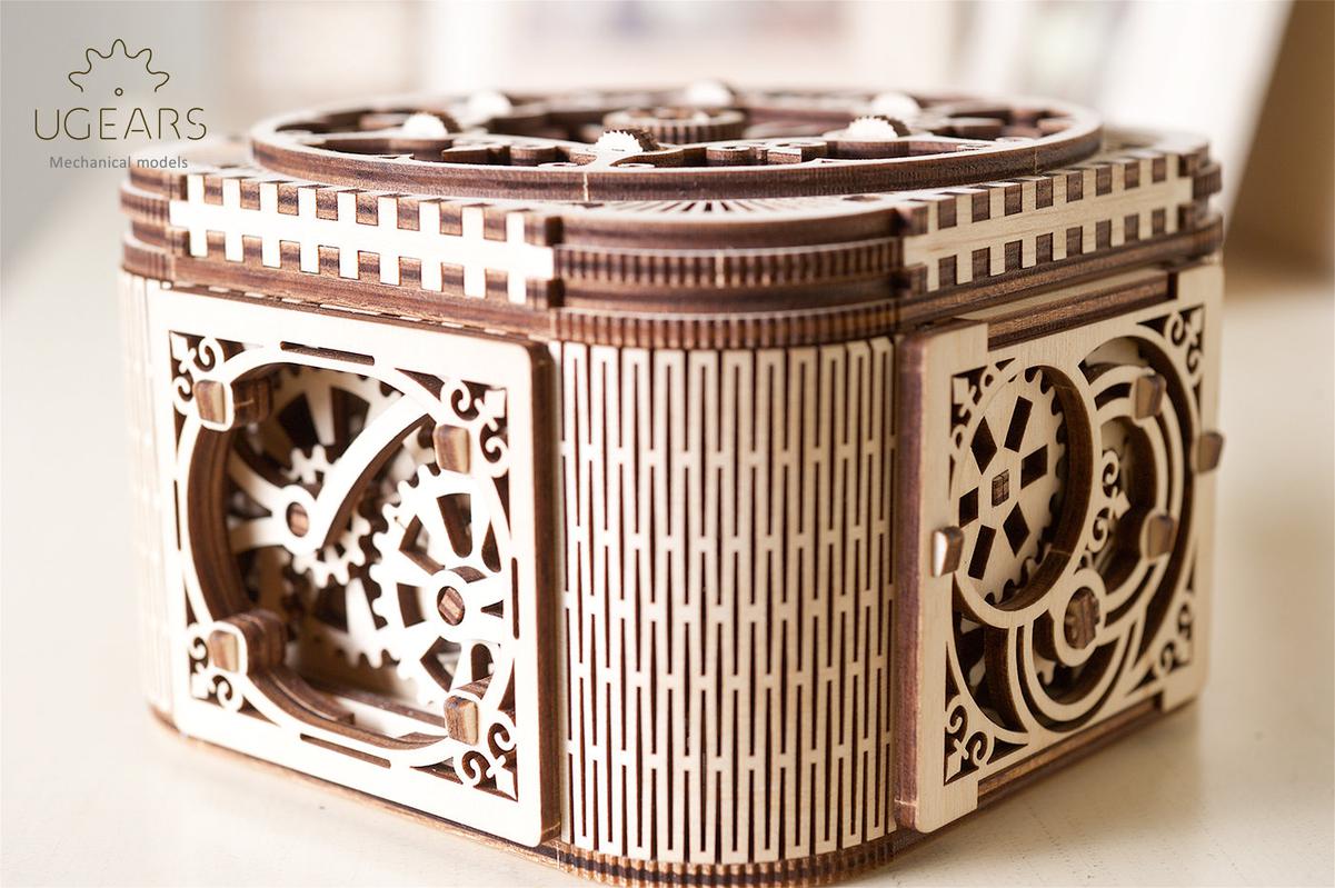 Ювелирная работа от инженеров UGEARS, позволила создать уникальный конструктор, который не только украсит ваш интерьер, но и сохранит ваши сокровища и секреты в безопасности