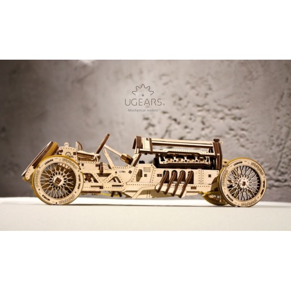 Машина резво разгоняется и имеет довольно большой запас хода. В основу дизайна модели легла конструкция гоночных спортивных автомобилей, участвовавших в самой первой гонке Гран-При, проходившей в Италии в начале двадцатого века. Повторяя изящные спортивные формы и линии оригинальных прототипов Формулы-1, новая модель Ugears имеет поистине олдскульный, элегантный дизайн, который подчеркивают такие элементы, как, например, установленная сбоку ременная передача, удлиненный корпус и мощная радиаторная решетка.