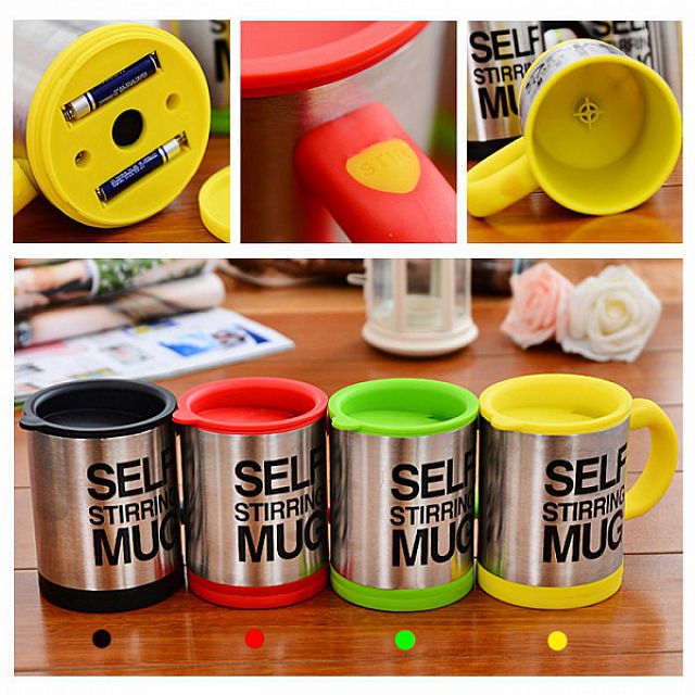 Кружка с мешалкой — это изобретение века, благодаря которому Вы забудете о длительных поисках ложек по дому и офису. Ложки больше не нужны! Помимо основной функции размешивания напитков, саморазмешивающая кружка пригодна для супа быстрого приготовления. Автоматическое размешивание напитков, регулируется кнопкой, которая удобно расположена на ручке. Вращение воды приводит небольшой винт, который вмонтирован в дно кружки.