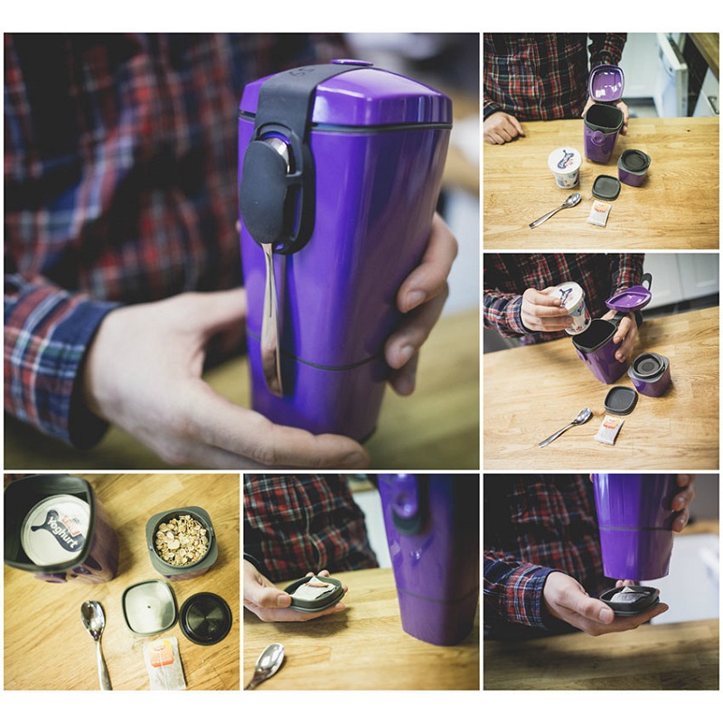 Не всем нужен полный контейнер еды для нормального функционирования в течении дня. Но ближе к вечеру все-таки требуется немного энергии и хочется чего-нибудь перекусить. Energybooster — это решение. В три пищевых отсека можно и суп с гренками налить, или мюсли с йогуртом, или второе с гарниром. В ланчбоксе также предусмотрен держатель для ложки сбоку. Удобно, просто и комфортно.