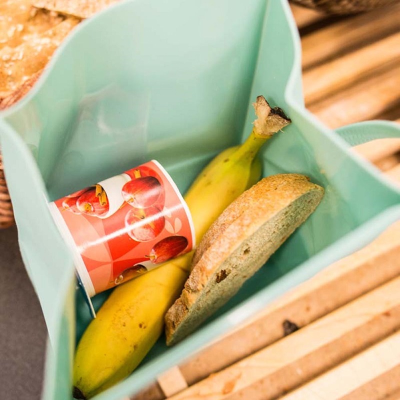 Foodbag — это многоразовый мешок для еды, Компактный, легко помещается даже в небольшую сумку, а пустой сворачивается в трубочку.