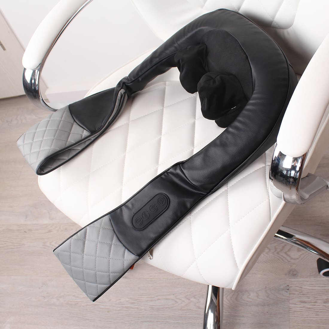 Удобная форма позволяет использовать массажер дома, за рулём, на работе. Встроены 6 массажных головок для максимальной эффективности массажа. Комплектация Legenda