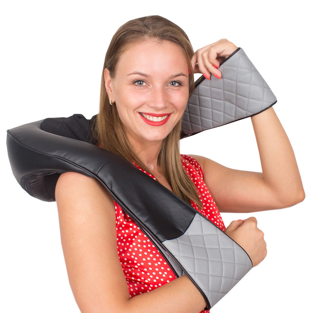 Усовершенствованный массажер для всей семьи с 4 режимами (2 автоматических, 2 стандартных) и 6 встроенными массажными головками. Массажный механизм состоит из 4 основных и 2 дополнительных массажных конструкций (похожие используются в массажных креслах), которые захватывают и профессионально разминают все проблемные участки на теле. Предназначен для массажа шейно-плечевой зоны, поясницы, спины, ног и бедер. Удлинённые ручки для регулирования интенсивности воздействия, утяжелитель в основании для более плотного прилегания к телу, функция прогрева, автоматическое отключение через 10 минут работы, наличие в комплекте автомобильного адаптера — всё это делает использования массажера простым и комфортным. Массажер для шеи и плеч Legenda 3D ролики GESS. 6 массажных головок для для глубокого 3D массажа 2 автоматических режима (круговой и расслабляющий) 2 стандартных режима (успокаивающий и импульсный) Возможность регулировать интенсивность массажа удлинёнными ручками Адаптер для автомобильного прикуривателя в комплекте Автовыключение через 10 минут работы. Массажер с удобными ручками, утяжелителем для более плотного прилегания к телу.
