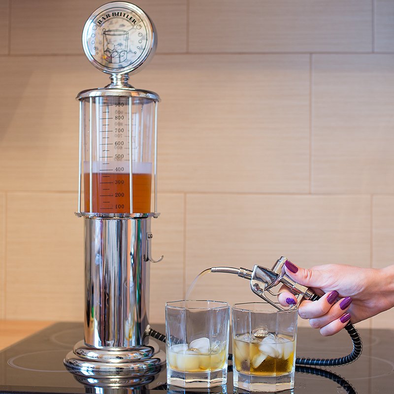 Если Вы любитель шумных вечеринок и устраиваете их каждые выходные у себя дома, то Вам стоит обратить внимание на уникальный мини-бар для напитков «Бензоколонка». Это замечательное устройство превратит любую вечеринку в оригинальное и незабываемое событие. Данный диспенсер имеет две прозрачные емкости для напитков по 0,5 л каждая и два шланга с краниками, с помощью которых Вы с легкостью можете наполнить очередной бокал. Бар больше предназначен для крепких напитков: виски, текилы, рома, но при желании его можно наполнить и пивом. Вы также можете заполнить одну половину алкоголем, а другую соком или колой, таким образом, готовить самые разные коктейли. Подарите бар для напитков другу или купите для себя, в любом случае, Вы не пожалеете об этом приобретении!