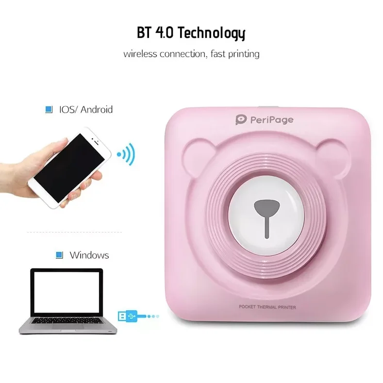 Мини принтер карманный «PeriPage» А6, розовый
