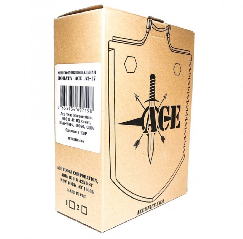 Длина лопаты ACE A2−17 составляет 69,3см, ширина — 12,8см; все детали плотно крепятся друг к другу, создавая ощущение монолитной конструкции в целом — без зазоров и люфтов. Базовая комплектация данной модели предлагает достаточно широкую область применения туристической лопаты от компании ACE, включая садовые, поисковые и спасательные работы.