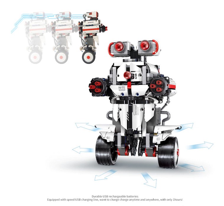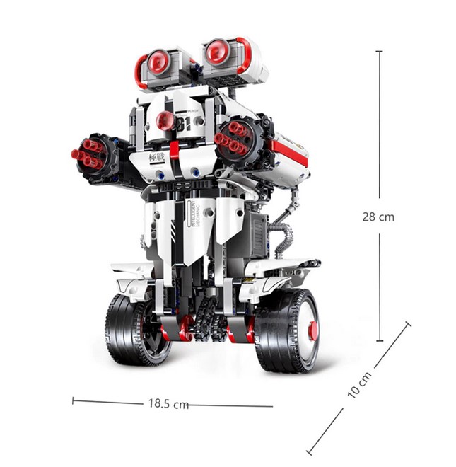 С конструктором «MOULD KING Умный робот с дистанционным управлением через смартфон» игра выйдет на совершенно новый уровень. Перед вами реплика LEGO Technic. Это механический бот, выкрашенный в серый, чёрный, белый и красный цвета. Он украшен цифрами, надписями, а также логотипом производителя. Конструкция робота многоуровневая, а на вершине её находятся глаза на выносных опорах. Внешне робот очень похож на полюбившегося всем Валли.