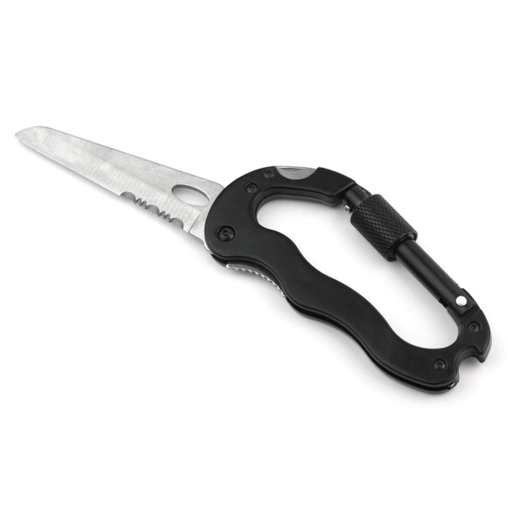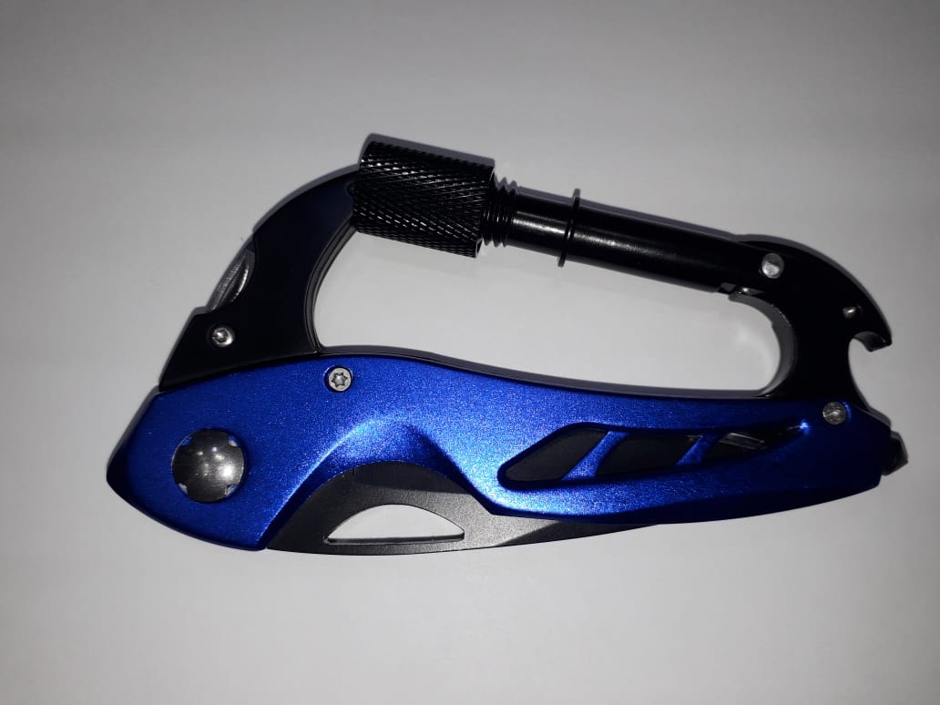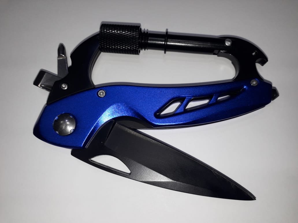 Может работать как карабин, отвертка (слот & Phillips), нож, открывалка для бутылок. Длина в разложенном виде: 18 см (7,08 дюйма) Длина складывания: 10,5 см (4,13 дюйма) Длина лезвия: 7,5 см (2,95 дюйма) Толщина лезвия: 0,2 мм Материал лезвия: нержавеющая сталь 420J2 Материал ручки: алюминий Вес: 80 грамм В комплект входит: 1 * Многофункциональный Карабин с ножом