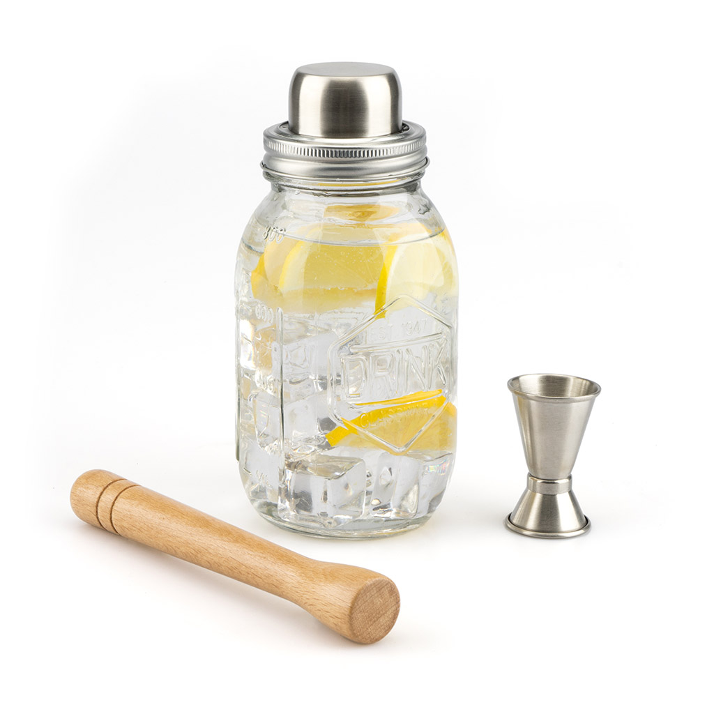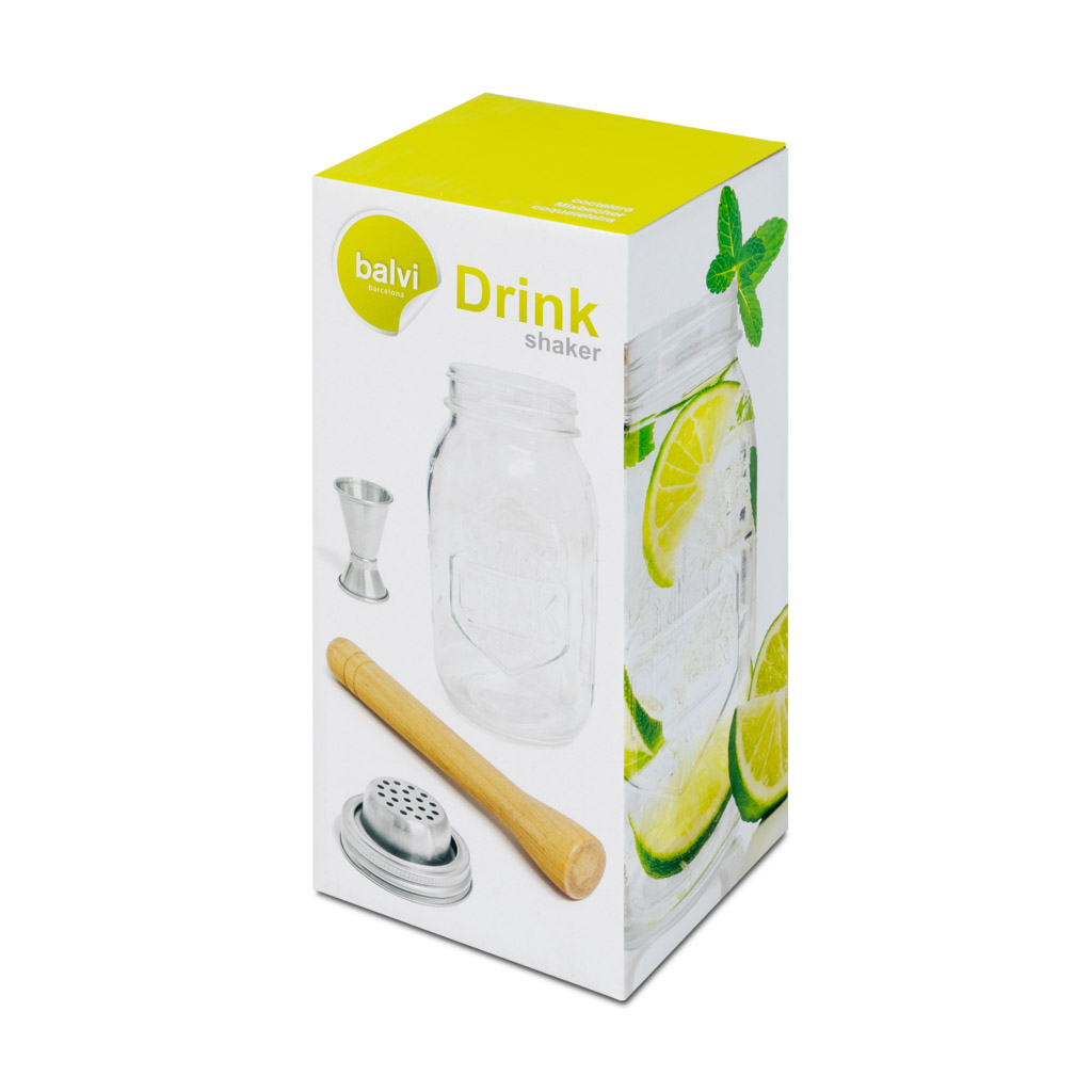 Мы любим радовать своих гостей, но просто вкусным ужином трудно удивить, ведь любое собрание за столом — это мини-праздник, который требует мини-представления! И каково будет удивление ваших гостей, когда вы достанете из шкафа набор для приготовления лимонада Drink и начнете уверенно «творить» свой авторский коктейль. Этот вечер запомниться надолго! А если вы любитель побаловать себя вечером прохладным коктейлем, то этот набор от испанского бренда Balvi станет незаменимым спутником ваших идеальных вечеров. Набор состоит из 4 предметов: шейкер 800мл, мерный стаканчик, сетчатый фильтр, деревянный мадлер (пестик-толкушка). Упакован в фирменную презентабельную упаковку.