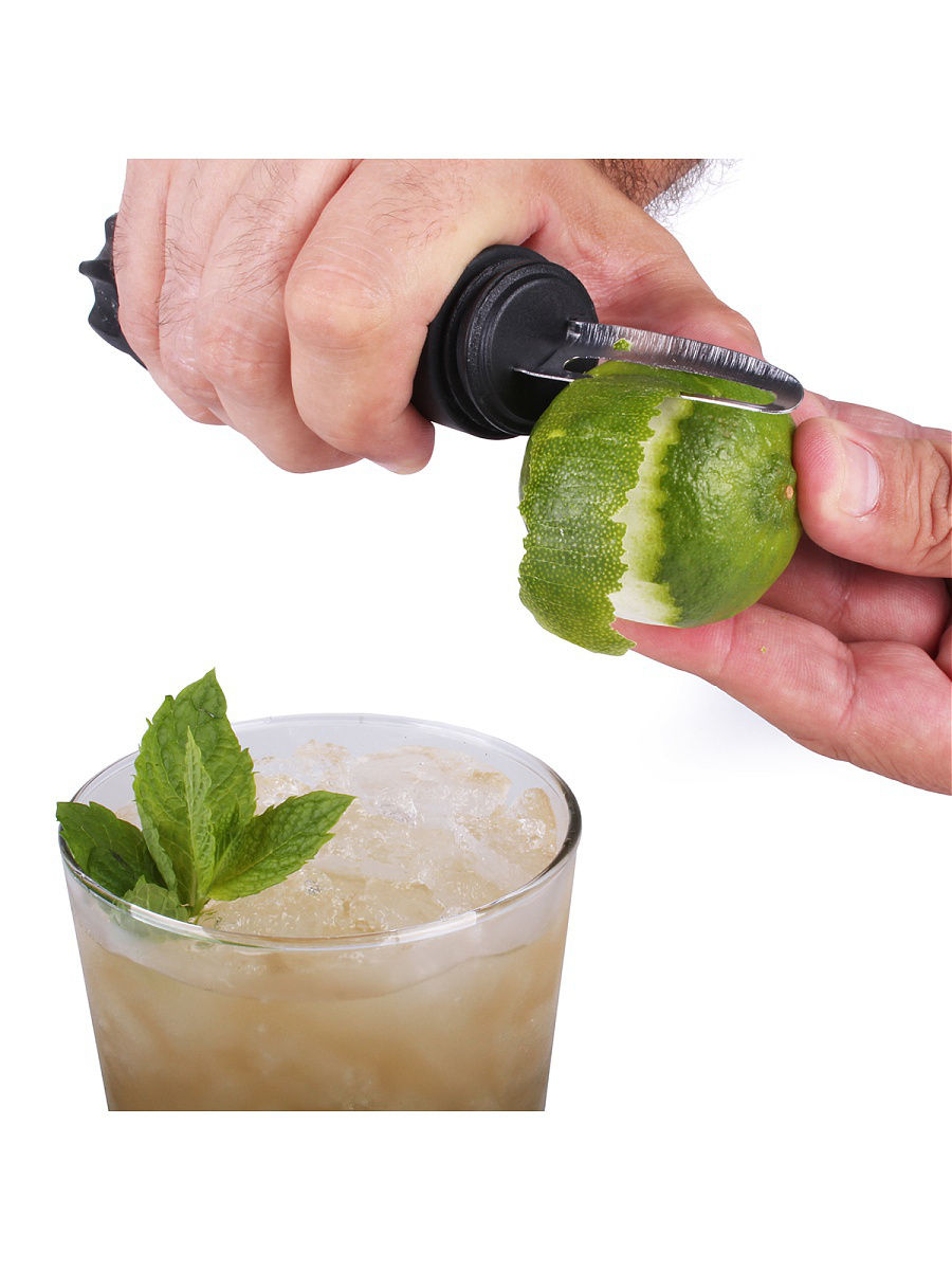 Особенности мадлера 4в1: • Позволяет тщательно растереть ингредиенты, выжать сок, снять кожуру, измерять объем сиропа для коктейля • Текстурированная поверхность края для растирания позволяет качественно работать с мякотью цитрусовых • Острая часть из нержавеющей стали для снятия кожуры с фруктов • Удобная мерная часть со шкалой • Комфортная, эргономичная рукоятка • Универсальный механический девайс не только для профессионального, но домашнего использования • Заменяет несколько инструментов.