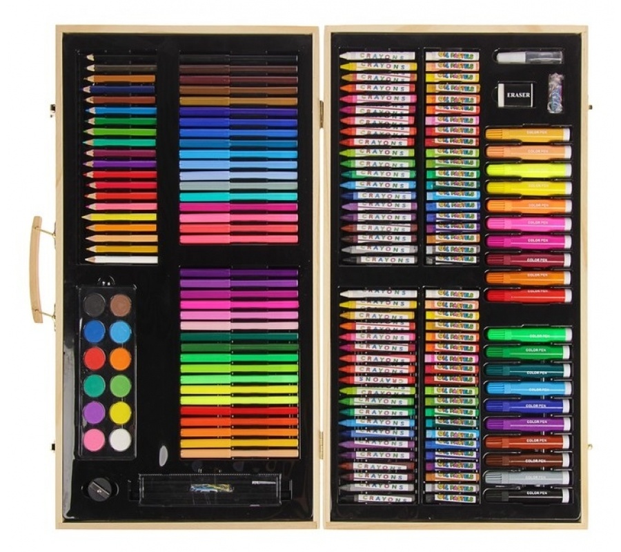 Набор настоящего художника — все, что нужно для создания рисунков в одном стильном чемоданчике. В набор входит большое количество предметов — карандаши, фломастеры, мелки и акварель, а также многое другое. Подарите ребенку настоящий праздник! Перед вами отличная возможность дать ребенку возможность проявить художественные таланты. В чемоданчике есть все для изобразительного искусства, набор легко можно взять с собой в гости, школу, детский сад.