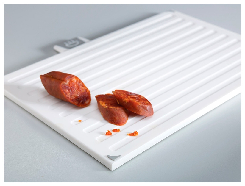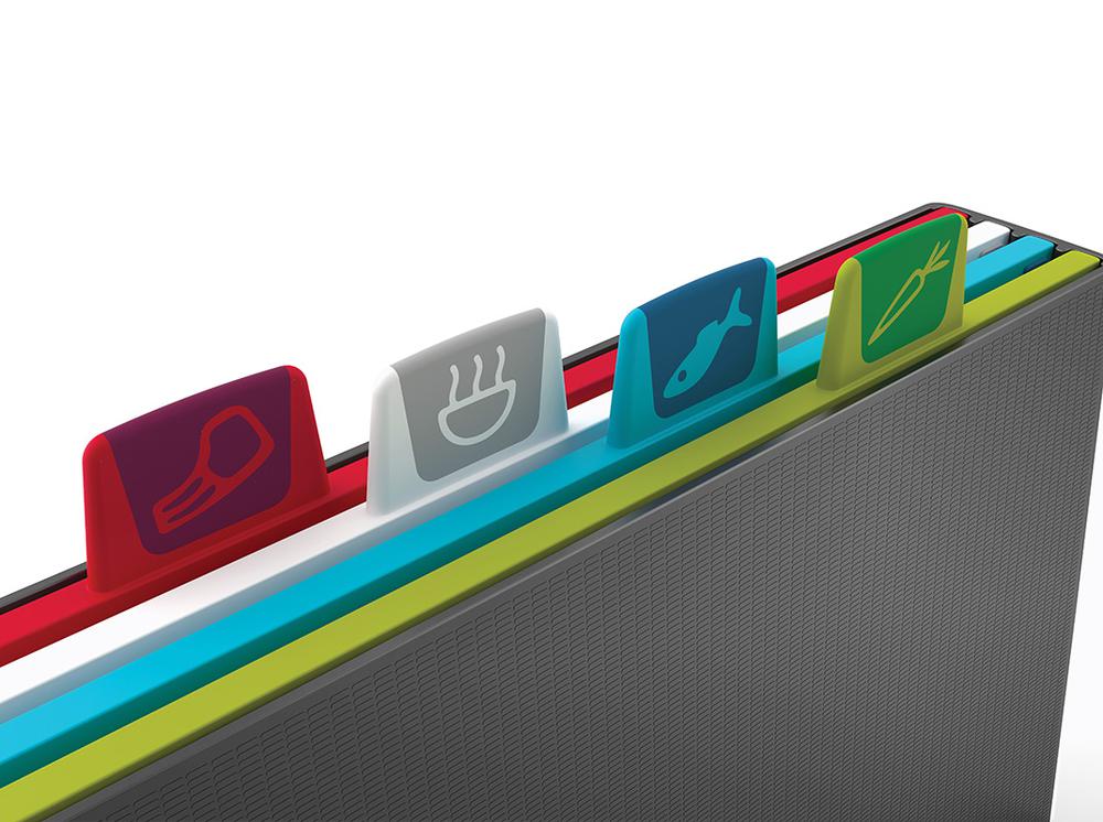 Простая и вместе с тем эффективная маркировка позволяет легко распределять доски для разных типов продуктов, сохраняя максимальную гигиену в процессе нарезки. Специальные ярлыки помогают определить,какую доску следует использовать для какого типа ингредиентов: сырого мяса, овощей, рыбы или же готовой еды.