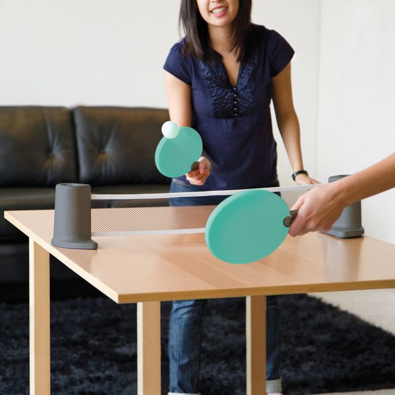 Известно, что для продуктивной работы надо делать небольшой перерыв каждые 40−50 минут — сидячий образ жизни никому не идет на пользу. Так что встаньте и разомнитесь! Устройте с коллегами матч по пинг-понгу! Такой компактный настольный теннис легко устанавливается на ровную поверхность шириной до 183 см (то есть любой рабочий стол). Чтобы не потерять мячики, их можно хранить в специальных выемках подставки. В комплекте: 2 ракетки, складная сетка, два мячика.