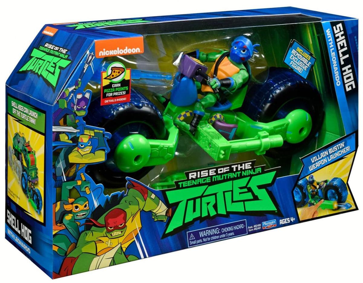 Набор создан по мотивам мультфильма «Эволюция Черепашек-ниндзя». В него вошли: базовая фигурка персонажа Микеланджело (12 см ), метательная стрела и съемный механизм для ее метания, а также универсальный мотоцикл. Фигурка подвижная, ноги сгибаются в коленях на шарнирах. Особый интерес представляет собой мотоцикл героя, он может состыковываться с другими машинами этой серии. При соединении двух ниндзя-циклов получается 4-колесный мотоцикл. Кроме того, мотоцикл оснащен механизмом для крепления к ниндзя-танку с функцией запуска. А также имеет крепления для игры с ниндзя-циклом в двух режимах: верхнем и нижнем. Состав набора: базовая фигурка, мотоцикл, метательная стрела и съемный механизм для метания.