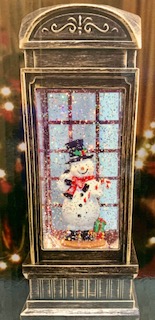 Новогодний декоративный фонарик «Снеговик в телефонной будке»