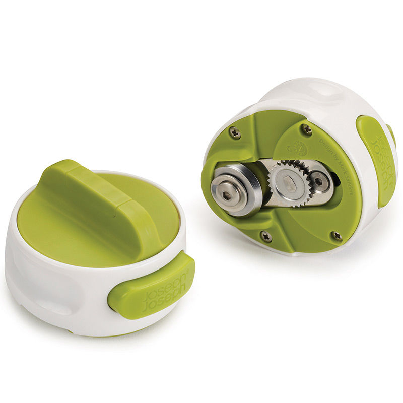 Компактный продуманный прибор с удобной рукояткой. Всего одним движением руки прилегает к краю крышки и плотно фиксируется, после чего банку можно быстро открыть при помощи удобного поворотного механизма. Чтобы полностью снять крышку, достаточно нажать на специальную кнопку. Инструмент одинаково удобен и для правшей, и для левшей.